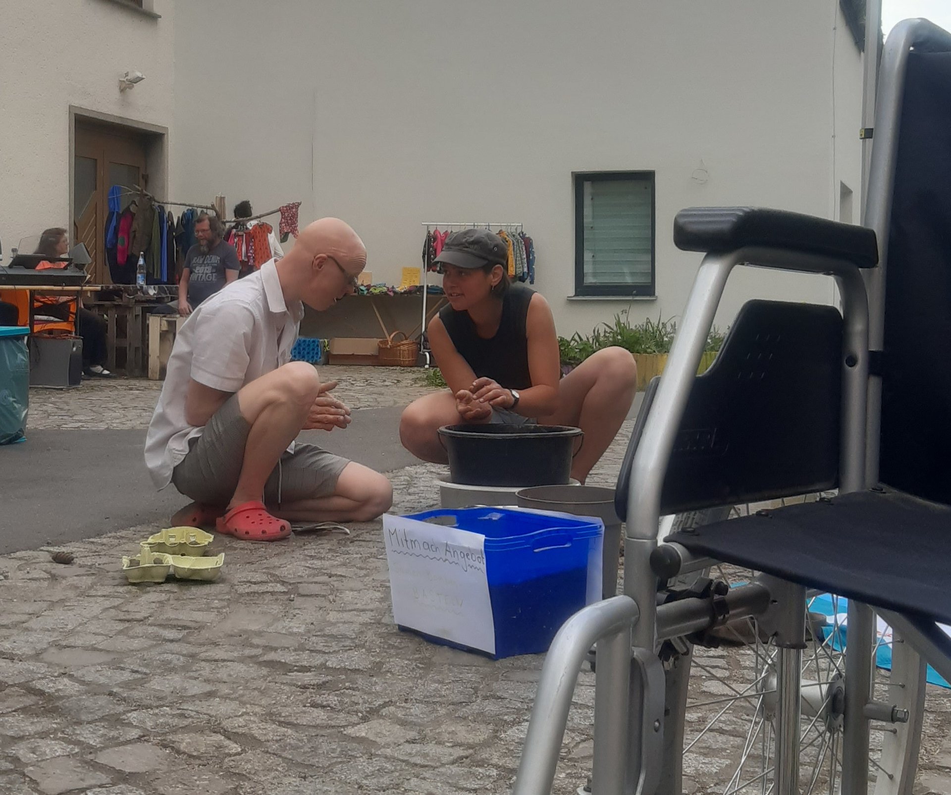 In angenehmer Atmosphäre konnten Menschen mit und ohne Behinderungen einander begegnen und in Dialog treten. Durch gemeinsame Mitmachaktionen zum Thema wurden niedrigschwellig Gesprächsgrundlagen geschaffen. Bewohner*innen und Gäste des Hofes nutzten die Gelegenheit, gemeinsam einen schönen Tag zu erleben und sich gesehen und gehört zu fühlen.