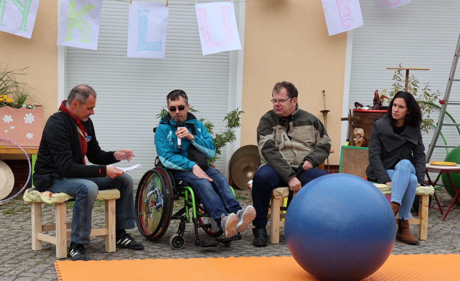 Im Rahmen der Protestwoche hatten wir zur Kundgebung am 6. Mai einen Infostand auf dem Leipziger Markt. Am 7. Mai haben wir dann auf unserem inklusiven Hof in Connewitz einen gemeinsamen und inklusiven Protesttag mit buntem Programm veranstaltet. Dort sind Musiker*innen und Theaterschaffende aufgetreten. Im Zentrum unseres Protesttages stand eine Diskussionsrunde zu dem Thema „BarrierefreiArbeitenNeuGedacht“. Gemeinsam haben wir mit Betroffenen, ihren Familien und Berufsbegleiter*innen gesprochen und versucht Aufmerksamkeit auf ein Thema zu lenken, dass noch zu wenig Beachtung findet.