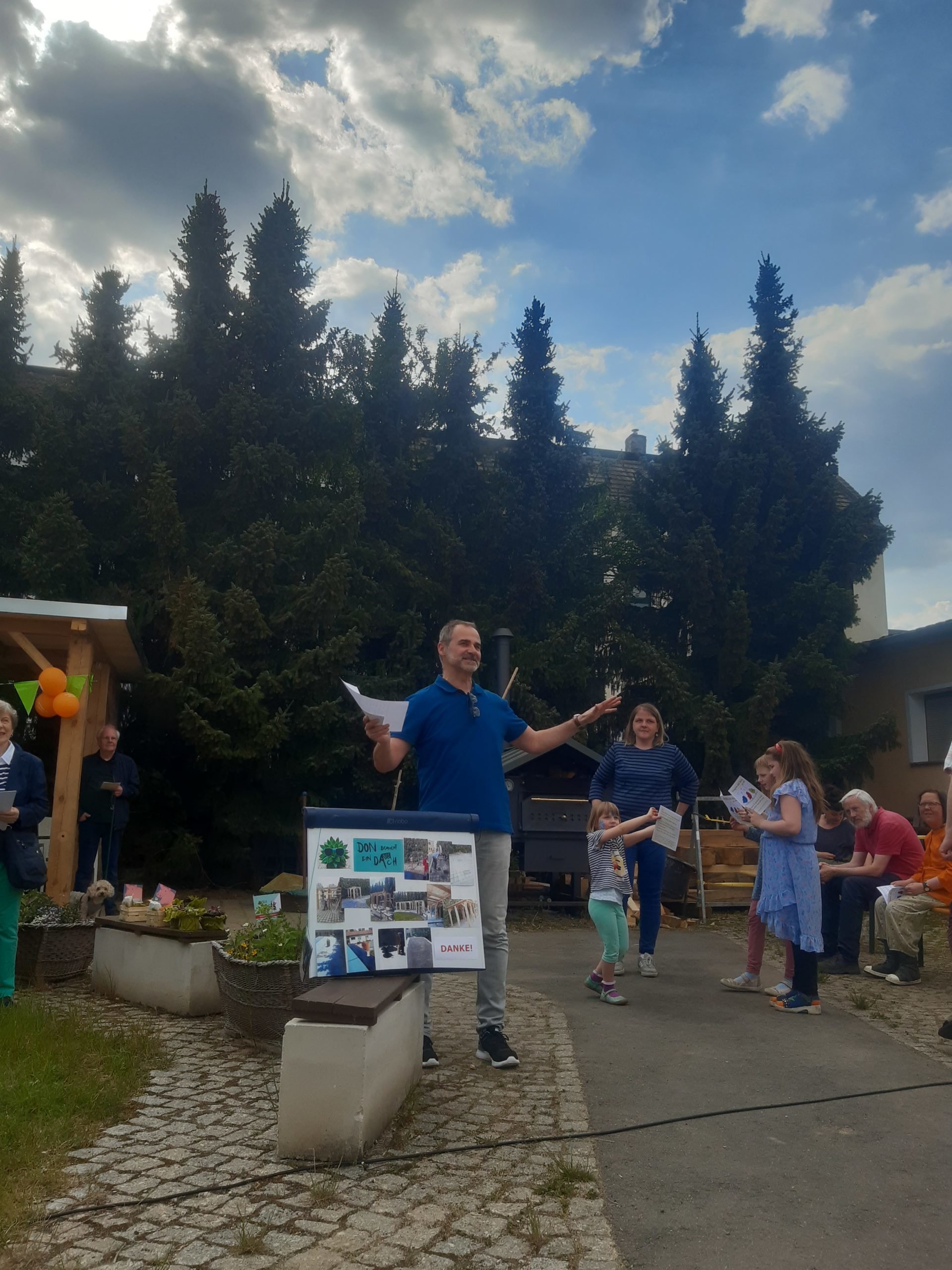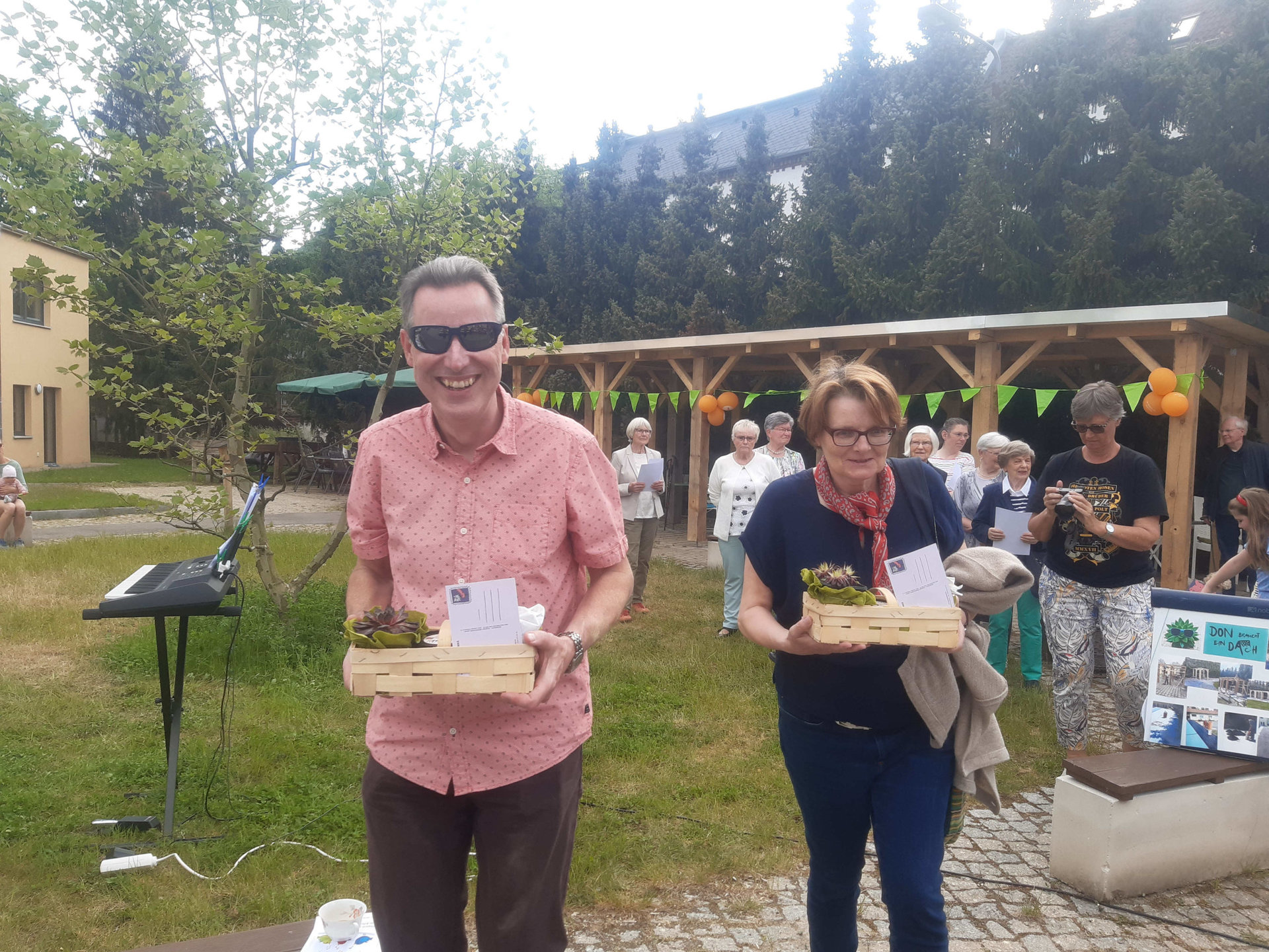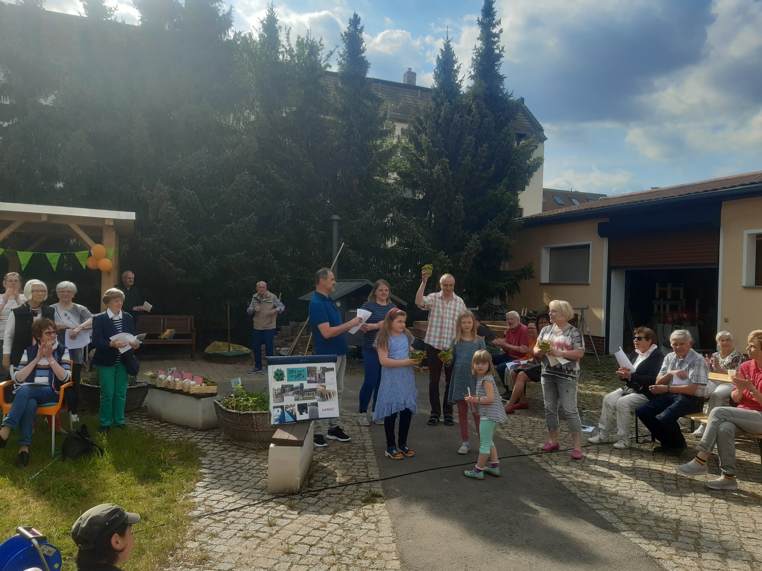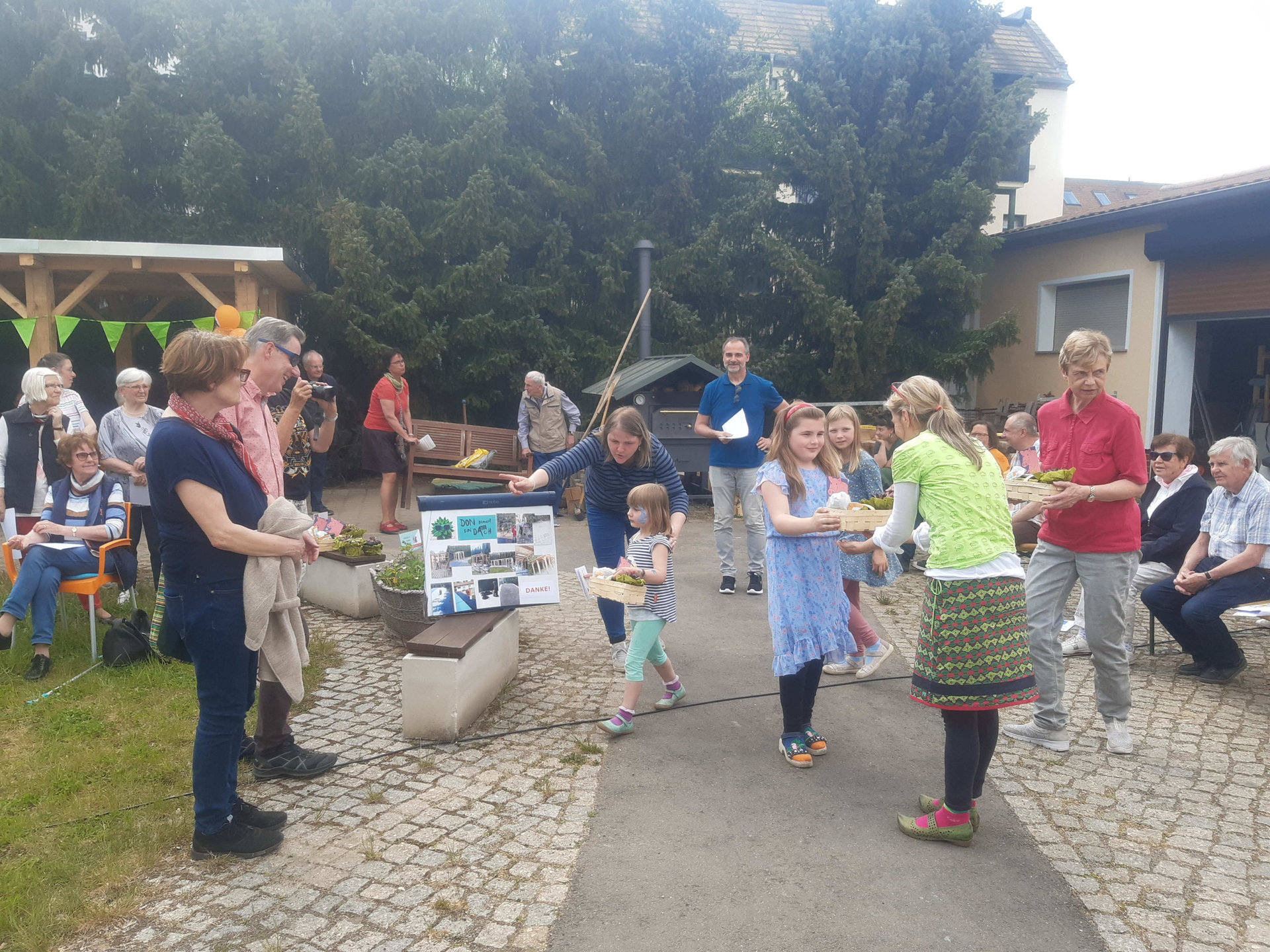 Und am 7. Mai 2022 konnten wir uns feierlich bei allen anderen Unterstützenden bedanken. Während der bezaubernde Seniorenchor seine Lieder zum besten gab überreichten wir „Dankes-Körbchen“ mit allerlei Schmackhaftem aus unseren Gemeinschaftsgärten und der Region.
