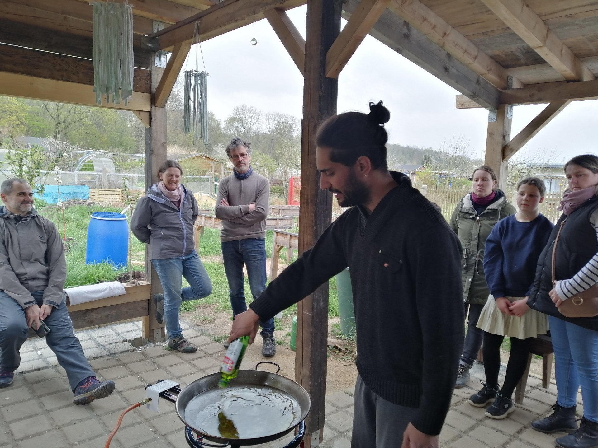 Am 22. April 2022 gab es eine Paella-Koch-Aktion im Gemeinschaftsgarten DILL. Alejandro zeigte unseren großzügigen Spender*innen, wie man eine traditionelle Paella zubereitet. Eine gemütliche und leckere Angelegenheit! Wir danken allen Unterstützer*innen und können dank ihrer Hilfe nun mit dem Bau und der Begrünung des Pavillons gebinnen.