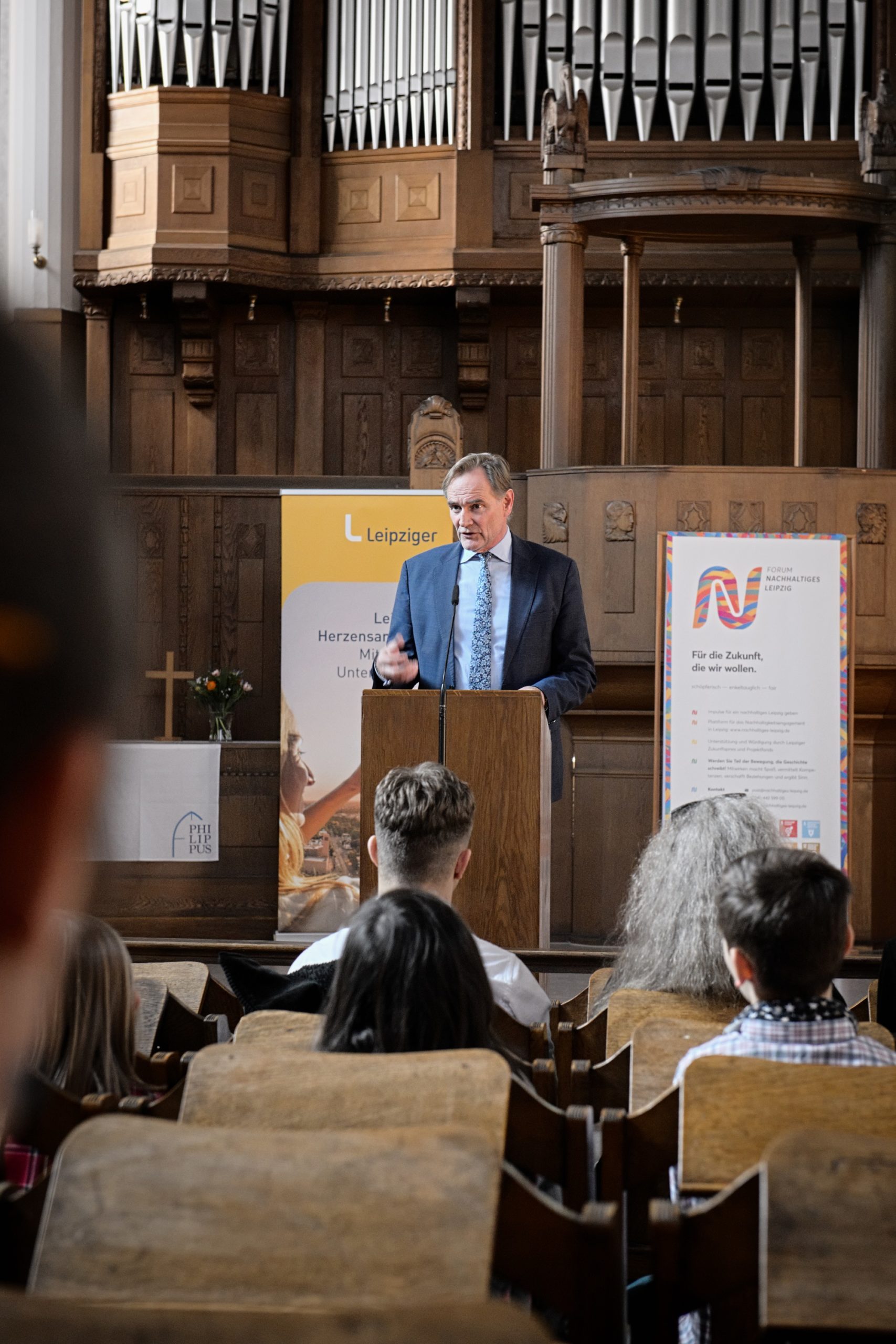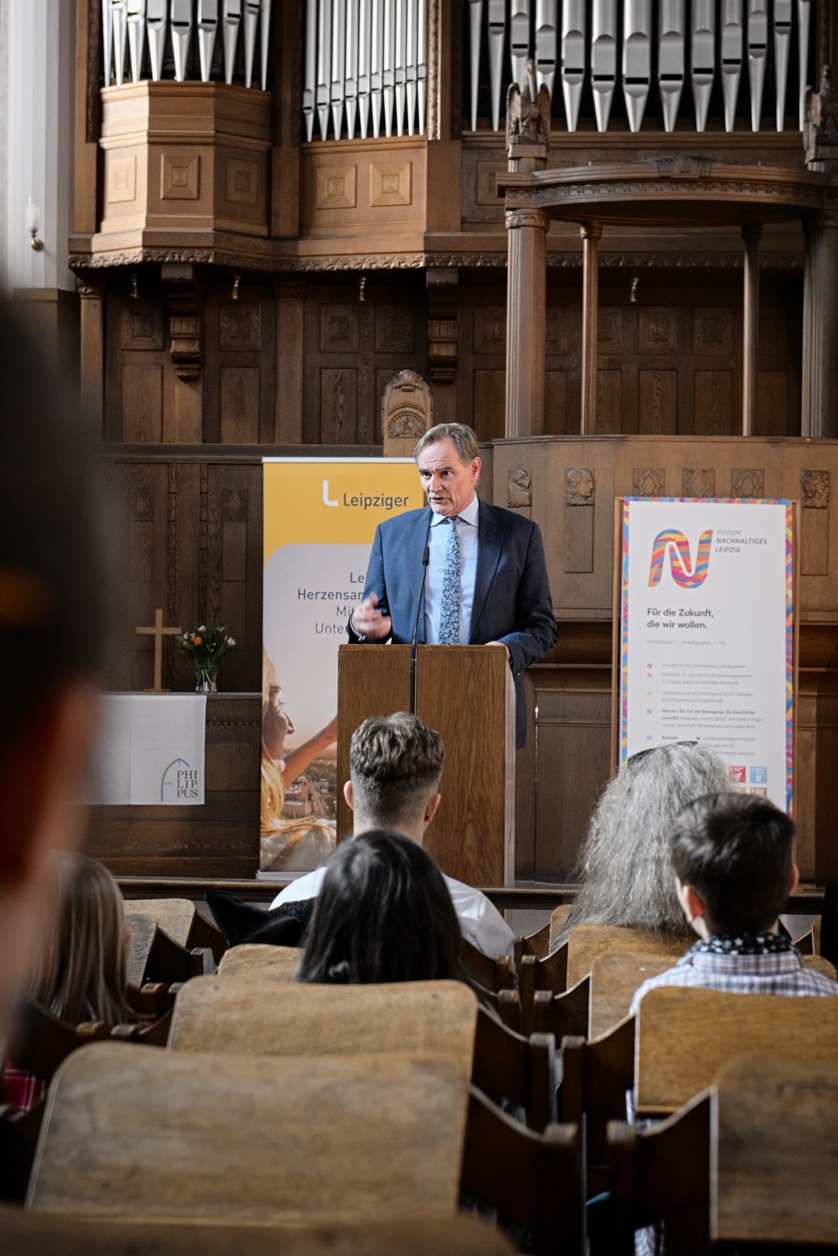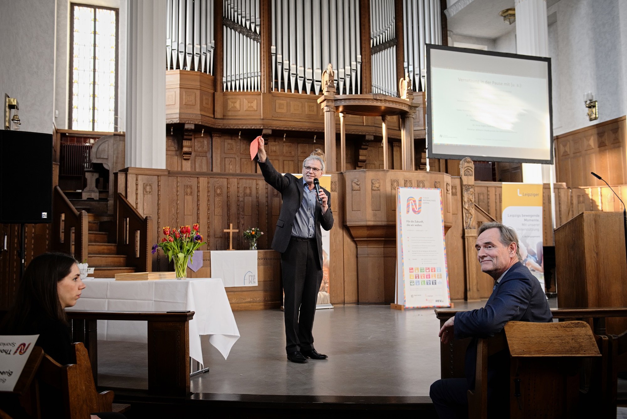 Am Montag, dem 11. April 2022, fand in der Leipziger Philippuskirche die Netzwerk- und Festveranstaltung zum Leipziger Zukunftspreis und Jugendwettbewerb 2021 statt. Oberbürgermeister Burkhard Jung und Vertreter der Sparkasse Leipzig, der Leipziger Gruppe und der VNG AG würdigten Projekte, die sich für eine nachhaltige Entwicklung der Stadt Leipzig einsetzen.