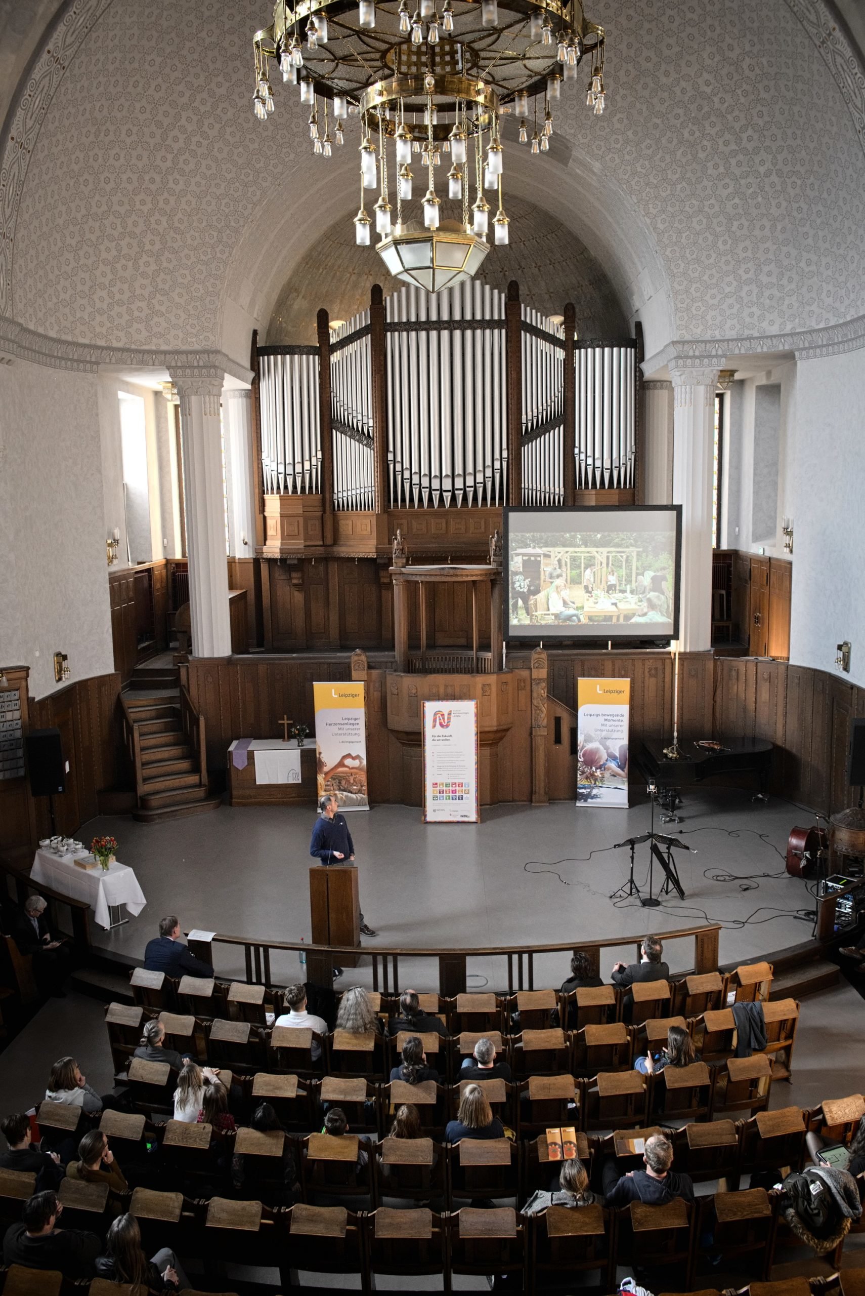 Den würdigen Rahmen für die Veranstaltung bot die Philippuskirche, die selbst einmal den Zukunftspreis mit ihrem nachhaltigen Gesamtkonzept erhalten hat. Bei einem saisonalen und vegetarischen Buffet entwickelten die 90 Teilnehmenden der Veranstaltung bis in den Abend hinein Ideen, wie Leipzig nachhaltiger werden kann.