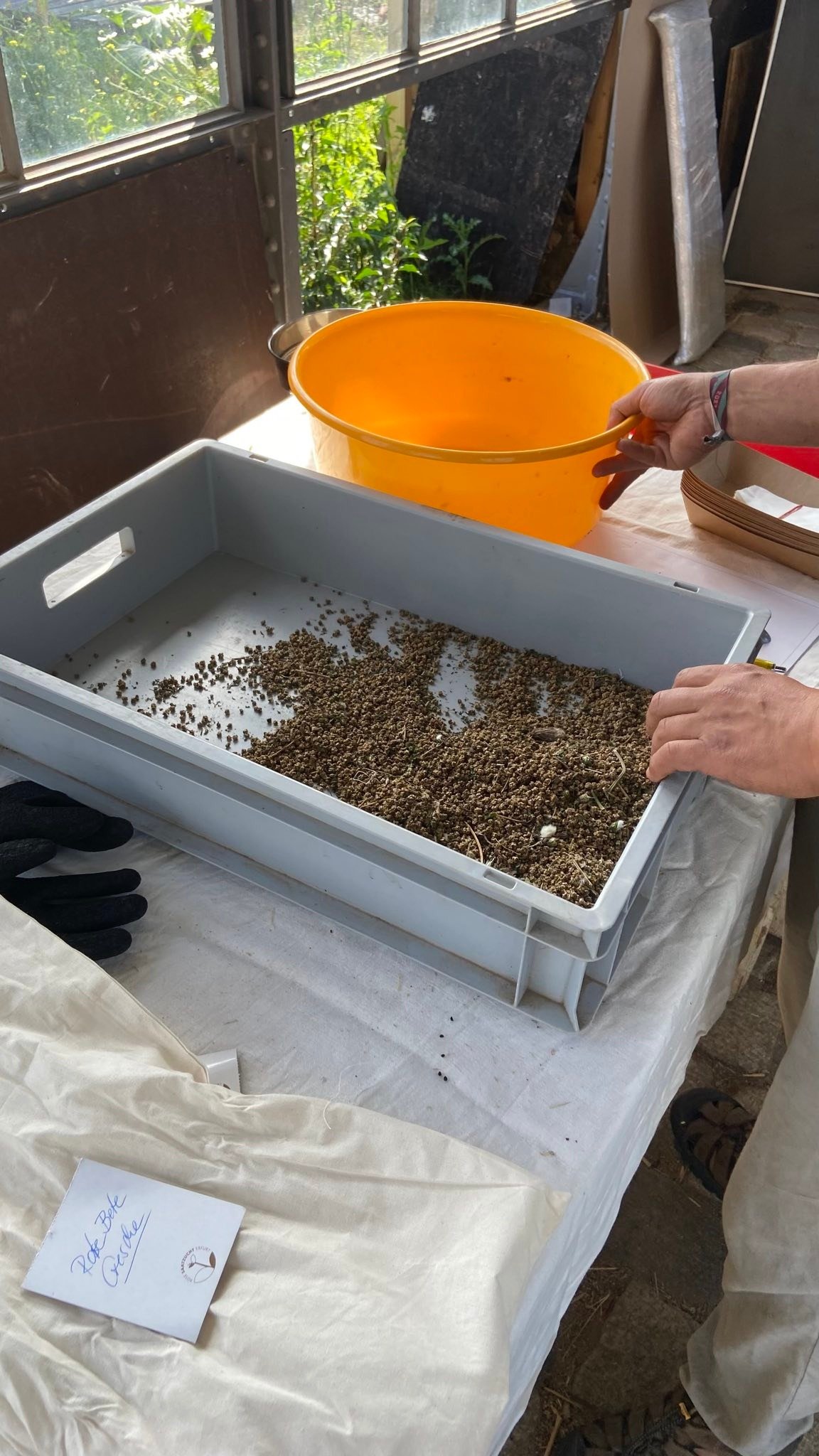 In diesem Workshop lernten wir, wie wir selbstständig eigenes Saatgut von unseren Lieblingskräutern, -gemüse und -blumen herzustellen können. Es wurde ganz praktisch gezeigt, wie die Saatgutgewinnung funktioniert und was es benötigt, eben diese erfolgreich umzusetzen. Gemeinsam mit unserem Workshopleiter Sebastian von der SoLaWi Langendorf e.V. haben wir in einem 3-stündigen Workshop die Grundvoraussetzungen besprechen und anschließend praktisch durchgeführt. Auch Pflanzenkunde, Materialien, Begrifflichkeiten und essentielle Fragen wie: „Warum gewinnt der Mensch Saatgut?“ und „Warum ist es wichtig, Saatgut zu vermehren?“ wurden von Sebastian erklärt. Im Verlauf des Morgens nahmen wir daher nicht nur praktische Tipps für die Saatgutgewinnung mit, sondern lernten auch, wie wichtig die Saatgutgewinnung für die Pflanzenvielfalt und Nachhaltigkeit ist.