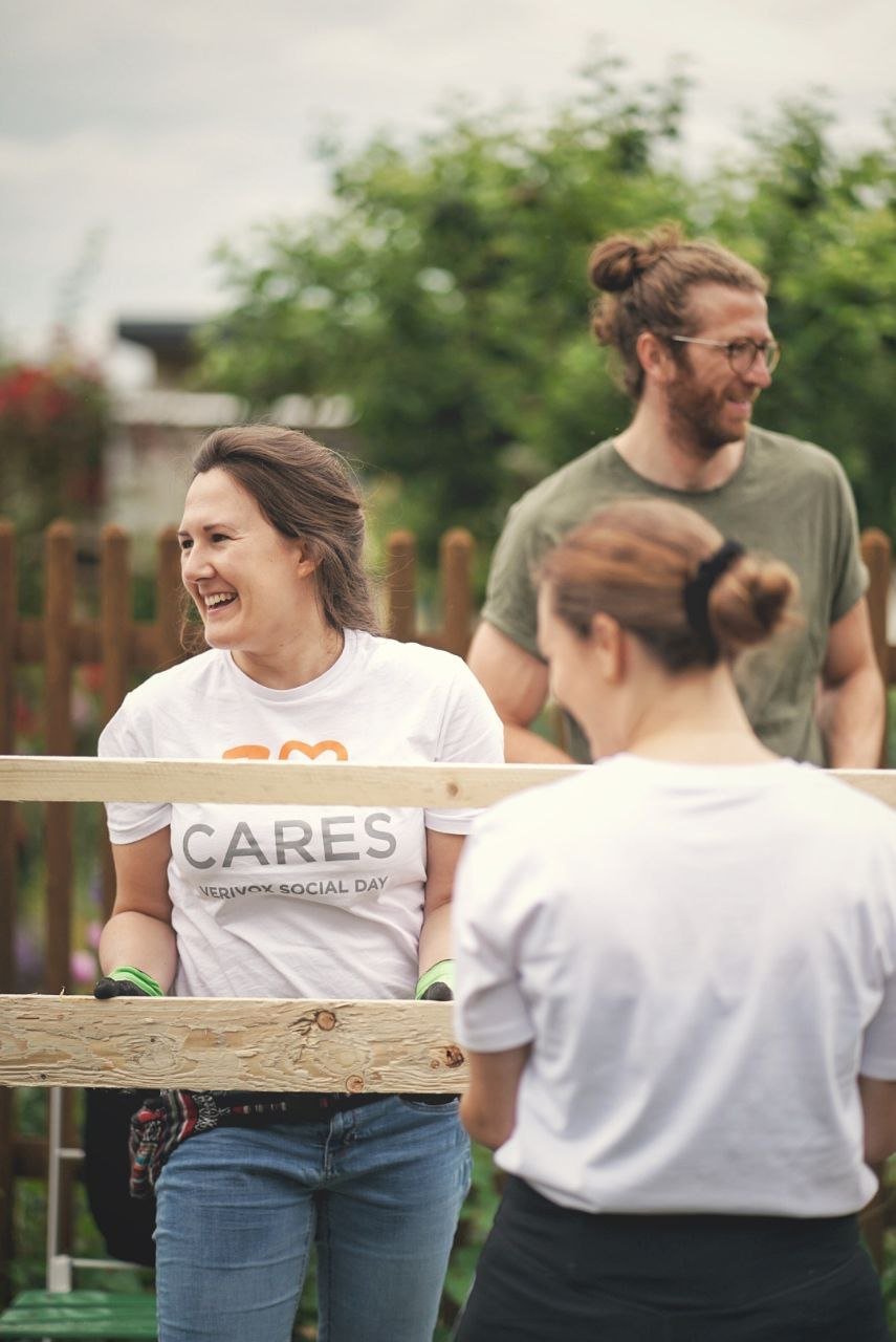Zum Social Day konnten wir einen Teil des rostigen Maschendraht Zaunes in unserem Gemeinschaftsgarten DILL durch einen schönen, neuen Holzzaun ersetzen. Dazu hatten wir VIEL Unterstützung von Mitarbeitenden der Firma verivox. Diese haben tatkräftig und gut gelaunt mit angepackt und sich nicht einmal von einem Regenschauer beirren lassen. Innerhalb von einem Vormittag hatten sie bewiesen, dass viele Hände wirklich viel schaffen können und das gemeinsames Arbeiten sehr viel mehr Spaß macht.