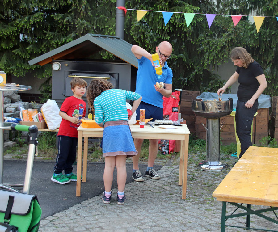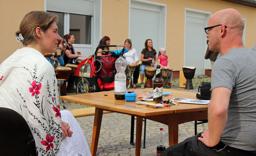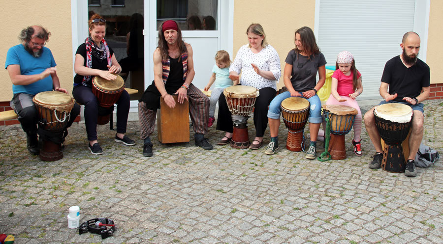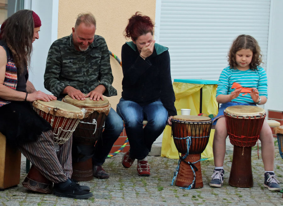 Gemeinsam haben wir die Nachbarschaft „zusammengetrommelt“, gegessen und den freundschaftlichen Austausch genossen.
