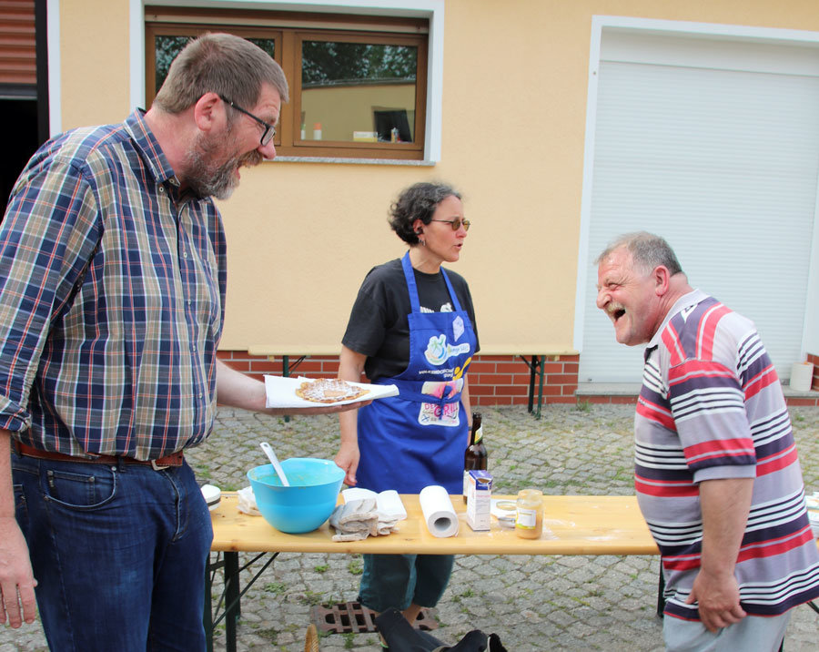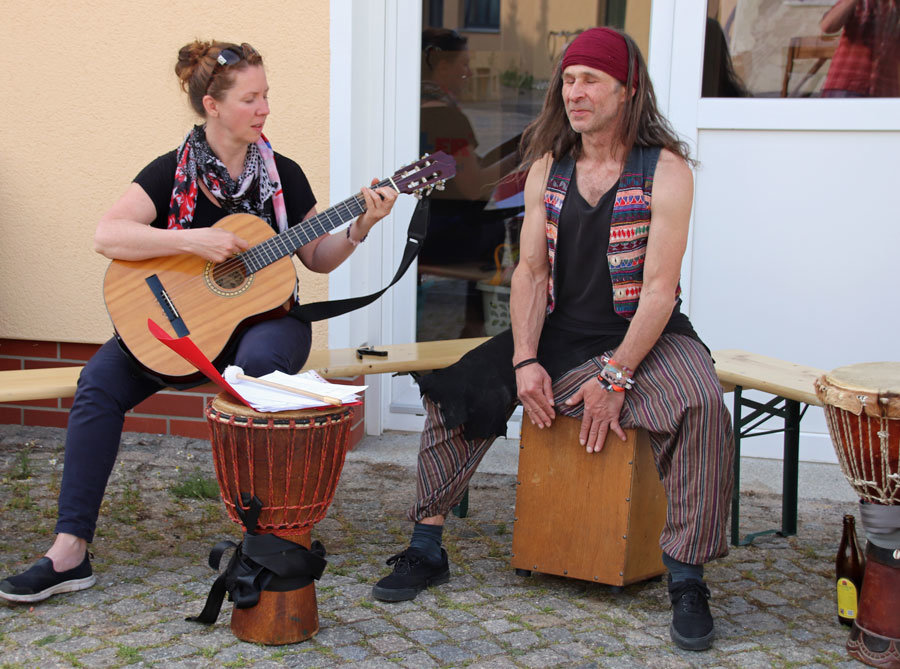 Es war wieder eine tolle Atmosphäre und wir freuen uns, so viele nette Nachbar*innen kennengelernt zu haben. Danke an euch und bis hoffentlich bald. Dank auch an Pfarrer Andreas Dohrn für seine Waffel-Bäckerei sowie an Ben, der uns Laien-Trommler mit Geduld angeleitet hat.