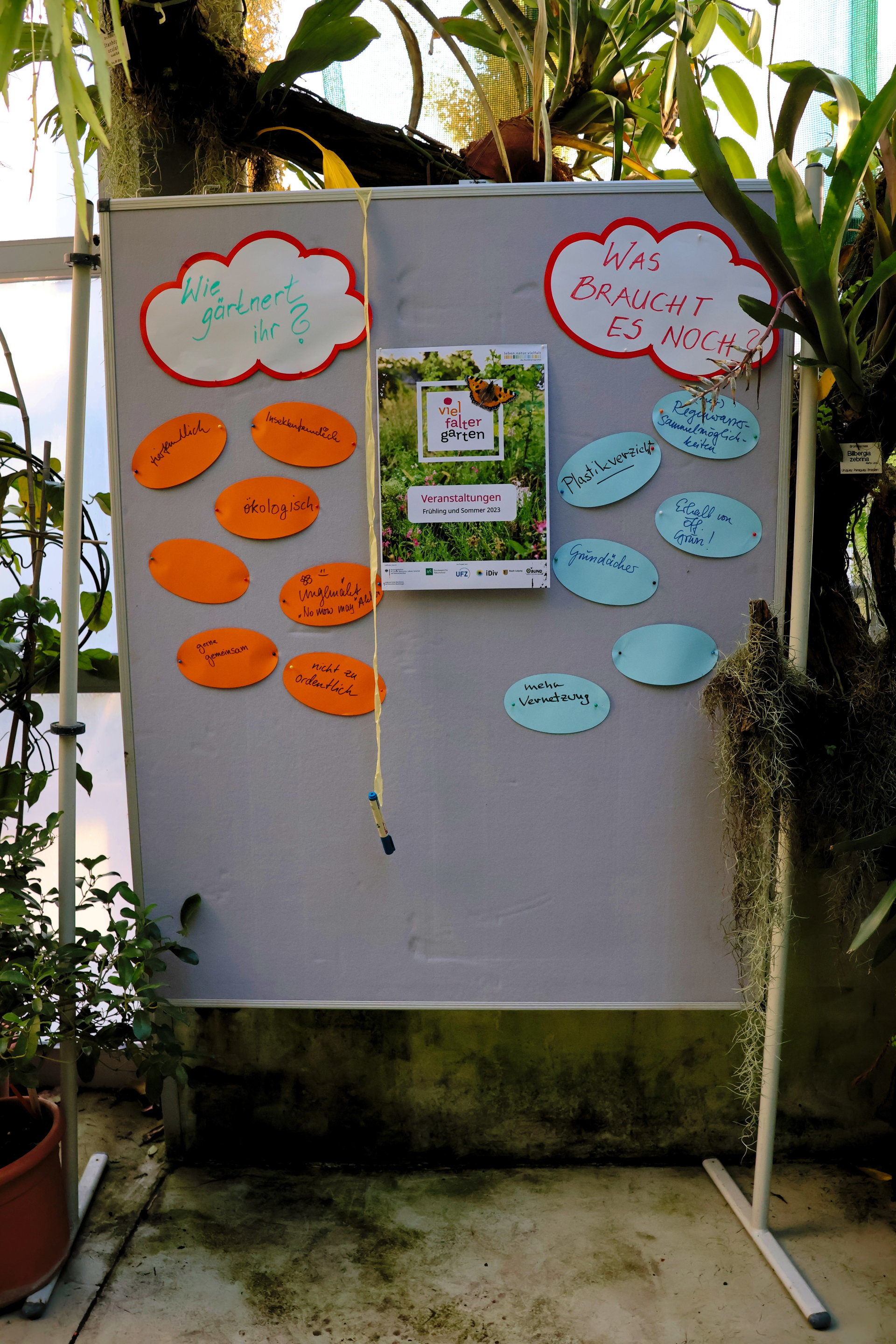 Am 18. März konnten wir mit einem Stand im botanischen Garten Leipzig auf die Viel-Falter-Beete in unseren Gemeinschaftsgärten DILL und Hildegarten aufmerksam machen. In beiden Gärten haben wir insekten- und falterfreundliche Beete angelegt. Diese zeichen sich u. a. durch eine staudenreiche Bepflanzung, den Verzicht auf Pestizide, das Stehenlassen von Disteln, Brennnesseln und Wildblumen oder auch ein ganzjähriges Pollen- und Nektarangebot aus. Der Schutz von Insekten und Faltern ist uns ein großes Anliegen. Viele Insekten sind zunehmend bedroht, darunter auch zahlreiche Schmetterlingsarten. Wenn Futterpflanzen und Lebensräume verloren gehen, verschwinden auch die Insekten und Falter. Beide sind jedoch ein wichtiger Bestandteil für Biodiversität und tragen mit dazu bei, unser Ökosystem aufrecht zu erhalten. Verschwinden sie, gerät auch unser Ökosystem und somit unsere Lebensgrundlage ins Wanken. Zum Schutz von Insekten und Faltern haben wir uns daher entschieden Teil des Projekt Viel-Falter-Garten zu werden und auch in unseren Gärten Viel-Falter-Beete anzulegen.