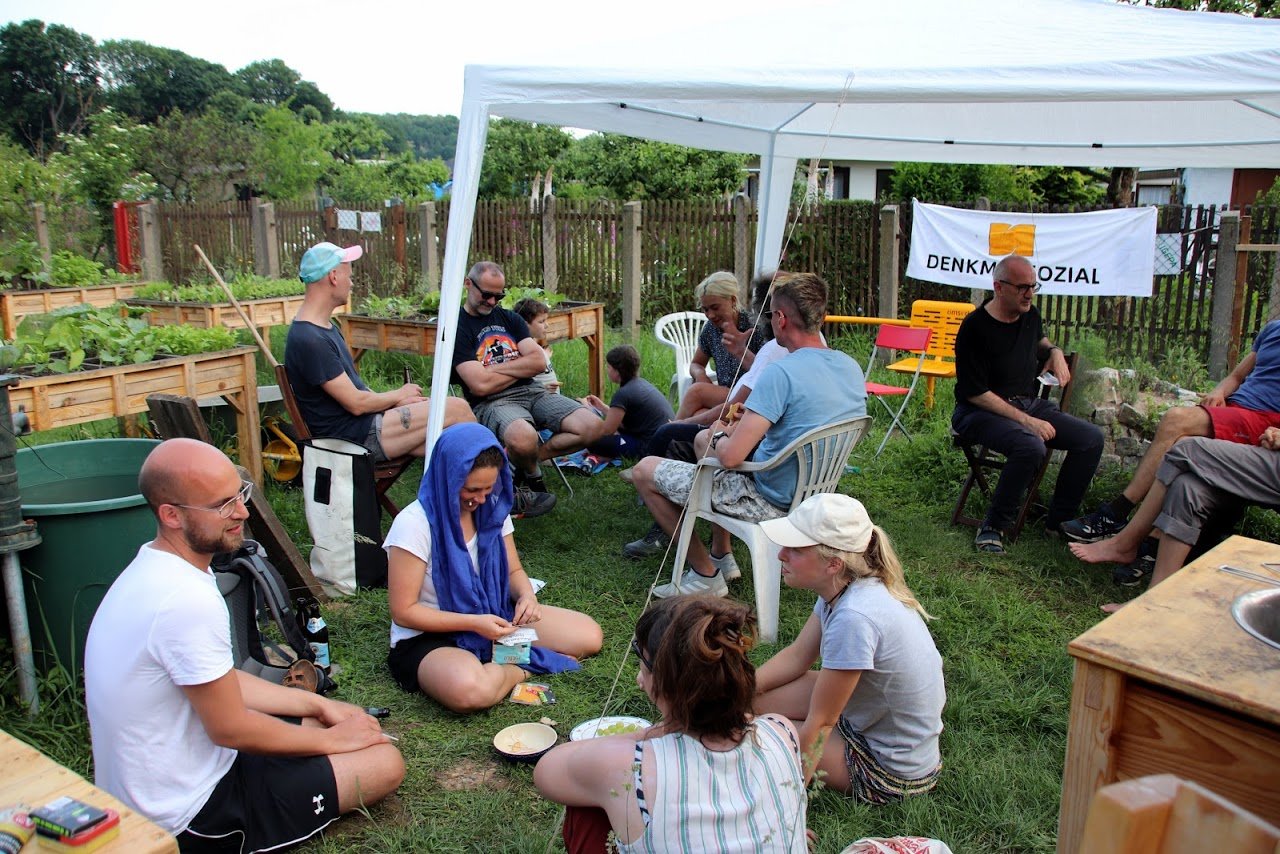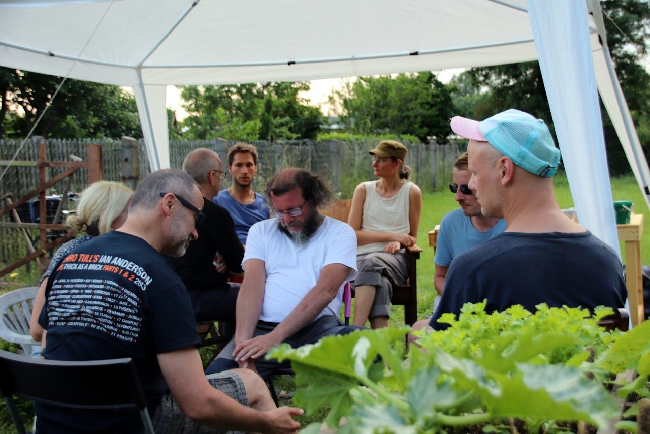 Daniel Weißbrodt, Historiker und Autor des Buchs : „Kurzer Abriss der deutschen Geschichte 2022-2050. Wie das bedingungslose Grundeinkommen unser Leben und unsere Gesellschaft verändert hat“ anwesend und moderierte die Veranstaltung. Immer wieder hakte er an interessanten Stellen nach und regte die Teilnehmenden durch seine fundierten Kommentare zum Nachdenken an. Auch die Teilnehmenden selbst hatten viele spannende Hintergrundinformationen und Anekdoten aus dem eigenen Leben, die für manche gut nachempfindbar waren, für andere wiederum ganz neue Blickwinkel eröffneten. Auch nach dem Workshop war der Redebedarf noch nicht erschöpft und so ließen wir den Abend im informellen Rahmen gemütlich ausklingen.